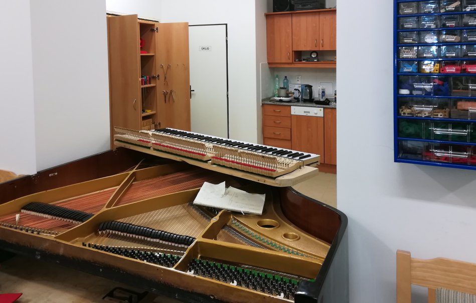V areálu školy se nachází menší budova výukových řemeslných dílen, kde se praktickou výukou připravují ladiči i klavírníci. Klavírníci mají také k dispozici další dílnu, která je ve druhé budově školy domova mládeže v Karlíně, v dojezdové vzdálenosti od školy. Obě dílny jsou vybavené všemi nástroji a technologií, kterou adept budoucího ladiče nebo klavírníka potřebuje k praktické části studia.