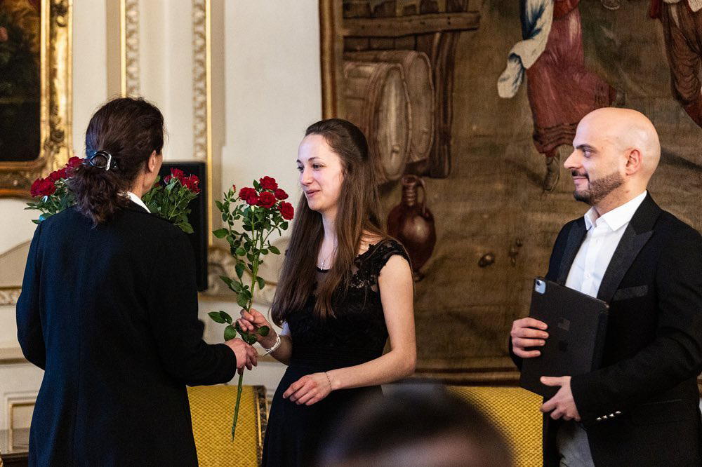 Celý večer se nesl ve znamení krásné atmosféry, kterou přineslo spojení hudby, slova a inspirativního prostředí. Přítomní posluchači ocenili vynikající výkony všech účinkujících a my Danielovi, Karolíně i prof. Hedarovi moc děkujeme a blahopřejeme k úspěchu.
